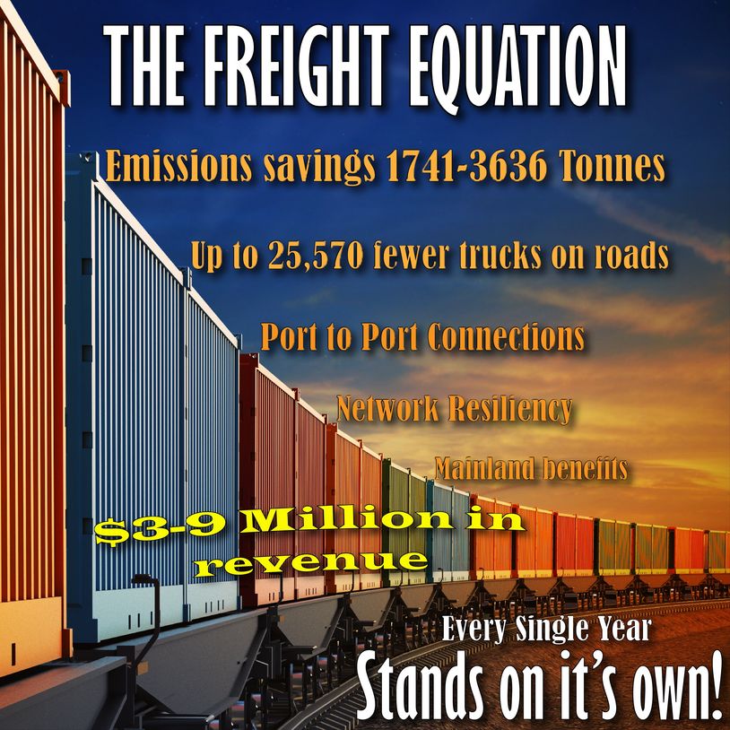 The freight is the foundational reason we need the Vancouver Island Rail Corridor Restored, the passenger service is social and economic relief for Vancouver Islanders.